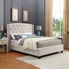 The Nantarre Fabric Button Tufted Wingback Upholstered Queen Bed with Nail Head Trim adds refined elegance and restful comfort to your bedroom. Designed with soft linen-like fabric, this bed features a deeply padded headboard with button tufting and sophisticated nailhead trim for a timeless aesthetic. The shelter-style wingback offers a cozy, enclosed feel, while the sturdy wood frame ensures long-lasting durability. With its classic design and plush upholstery, this bed enhances any contemporary bedroom style. Adult assembly is required, and a box spring is necessary for use. Dimensions: 86"L x 76"W x 56"H.
