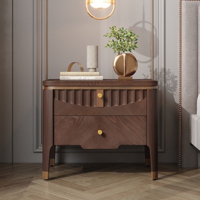 Accent Cabinet Modern with 2 Storage Drawers and Anti-Slip Legs for Bedroom or Entryway Orange - 3irtyhousy