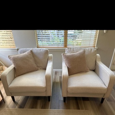 These chair are exactly what I was looking for to finish out my living room. Fabric is nice and the color is a perfect linen beige that goes easily with other furniture. A little steam gets the wrinkles out of the cushions. Easy to put together. I am satisfied with the quality for the price!