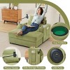 This multifunctional armchair features a contemporary design and versatile functionality that fits perfectly into modern living spaces. It can serve as a standard armchair, a chaise lounge when extended with the ottoman, or a compact sleeper for overnight guests. The movable ottoman includes a hidden storage compartment ideal for stashing away blankets, books, or remote controls. Integrated USB charging ports and a flexible phone holder provide added convenience for streaming or reading while keeping your device powered. Dual cup holders are built into each armrest for easy access to beverages, and side pockets offer additional storage for everyday essentials. Upholstered in soft chenille fabric over a sturdy plywood frame and filled with high-density foam, this chair combines comfort with durability. The design is compact, easy to assemble, and ideal for apartments or smaller rooms.