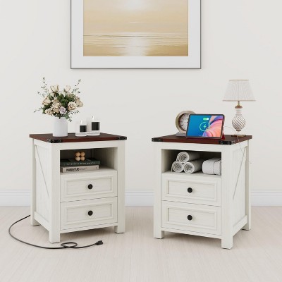 Accent Nightstand Farmhouse with 2 Drawers for Bedroom Storage - 18.1in White - 3irtyhousy