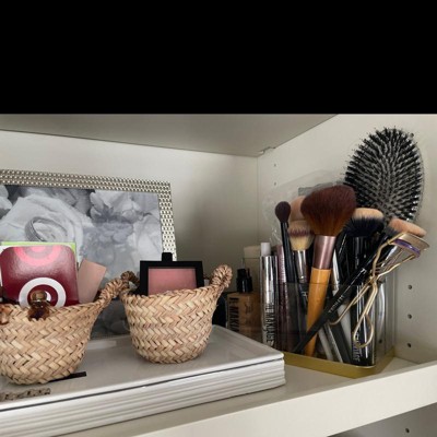 Keep your vanity tidy with the Vanity Organizer from Threshold™. This vanity organizer features one big compartment and two smaller compartments to accommodate all your makeup brushes, eyelash curlers, lip colors and other makeup accessories. Featuring a transparent design with a golden base, this minimalist vanity organizer brings modern and contemporary flair to your vanity.