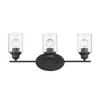 Straight lines but never straight-laced. Gemma is stylish and sophisticated. Clear, cylindrical glass complement Gemma's neutral finish. Vanity Matte Black Finish Clear, Cylindrical Glass Shades 8-in x 5-in Oval Back Plate Requires 3, 100-Watt Max, Medium Base Bulbs Installation Hardware Included 1 Year Warranty. 1 YearShade Included: Yes / Dimmable: Yes. ,
