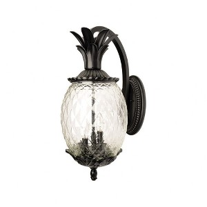 This Three Light Wall Lantern has a Black Finish and is part of the Lanai Collection. Shade Included.. Back Plate Height: 9.50 / Back Plate Width: 5.75. , Material: Aluminum, Finish Color: Matte Black, Width: 10", Height: 21.75", Depth: 11.75", Backplate Width: 5.75", Backplate Length: 9.5", Number Of Bulbs: 3, Wattage: 60 Watts, Dimmable: No, Moisture Rating: Dry Rated