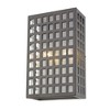 Though there are squares, Letzel is not square. A framework of steel in a continuous grid pattern combines with clear, seedy glass. Letzel is available in oil-rubbed bronze and satin nickel. Assembly Required: Yes / Chasis Included: FALSE / Dimmable: Yes. , Material: Steel, Finish Color: Satin Nickel, Width: 8", Height: 13.25", Depth: 4", Height From Outlet Box: 6.75", Backplate Width: 6.625", Backplate Length: 13.25", Number Of Bulbs: 2, Wattage: 60 Watts, Dimmable: No, Moisture Rating: Wet Rated