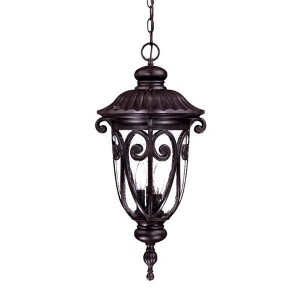 This Three Light Hanging Lantern has a Black Finish and is part of the Naples Collection. Shade Included.. Remodel: / Trim Included: . , Material: Aluminum, Finish Color: Marbleized Mahogany, Width: 11.25", Height: 24.5", Number Of Bulbs: 3, Wattage: 60 Watts, Dimmable: No, Moisture Rating: Dry Rated
