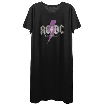AC/DC Back In Black Gray Leopard Print Logo Crew Neck Short Sleeve Girl's Black T-shirt-Small