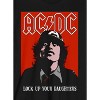 • CUSTOM DESIGN: An ACDC band member appears on a red background under the group's logo while white letters appear below the image. Fans of the ACDC rock band will love the fun custom design on this shirt.