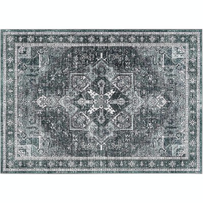 Acekool 10x13 Green Camel Washable Area Rug, Modern Solid Braid Print, Non-Slip, Stain Resistant, Low Pile Accent Carpet for Living Room Bedroom