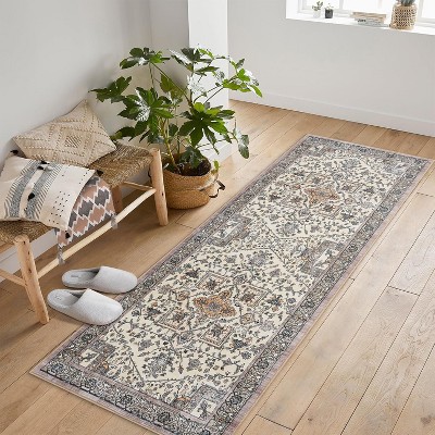 Acekool 10x13 Machine Washable Rug, Modern Non-Slip Minimalist Area Rug, Stain Resistant, Foldable Neutral Accent Carpet for Living Room, Beige