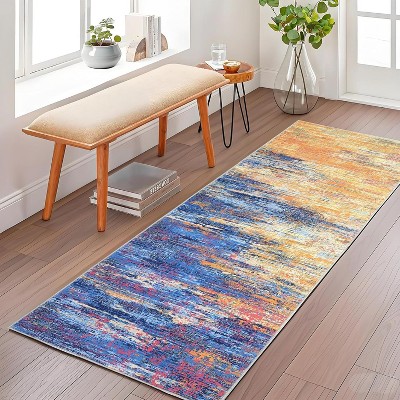Acekool Washable Floral Runner Rug, Non Slip Thin Hallway Accent Carpet, Soft Throw Mat for Kitchen, Bathroom, Entryway, Farmhouse Decor