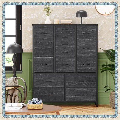 Acekool 15-Drawer Dresser - Space-Saving Storage in Charcoal Black