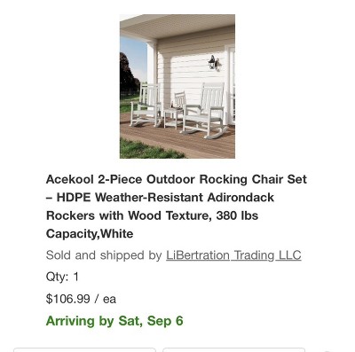 Definitely don’t waste your time or money on this, the company only sent one rocking chair when it’s supposed to be a set of 2. Basically said there’s nothing they can do about it other than return. Really disappointed