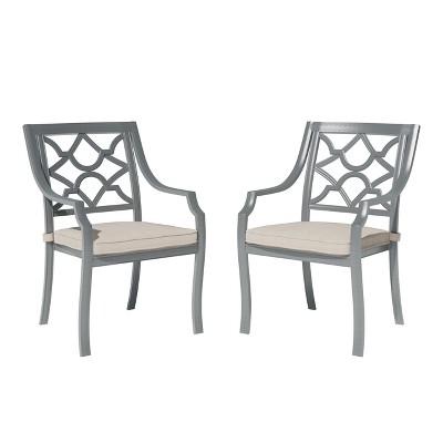 Acekool 2-Piece Stackable Outdoor Dining Chairs Set with Aluminum Frame and Armrests, Lightweight Patio Chairs for Backyard and Garden