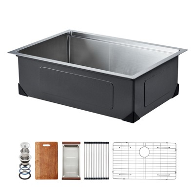 Acekool 30"x22" Drop-In Kitchen Workstation Sink, 16-Gauge Stainless Steel, 10" Deep Single Bowl with 6 Accessories