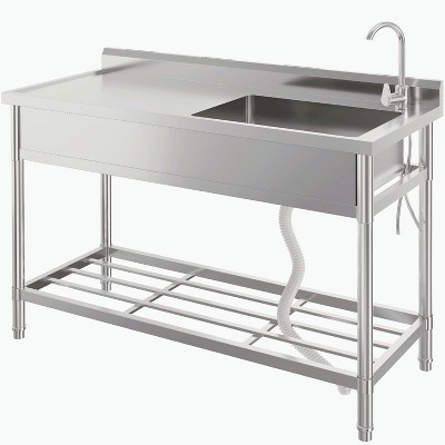 Acekool 39in Stainless Steel Double Bowl Utility Sink, Commercial Kitchen/Laundry/Bar Sink with Storage, 39"x18"x40"