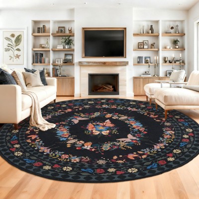 Acekool Floral Washable Area Rug Non-Slip Pet Friendly Foldable for Living Room