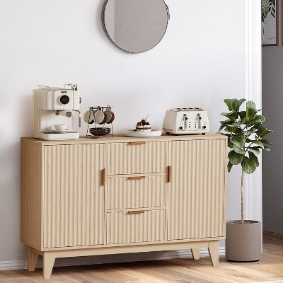Acekool 55 Inch Buffet Sideboard Cabinet with Glass Doors and Fluted Drawers, Storage Cabinet Table for Dining Room, Kitchen, Living Room, Natural