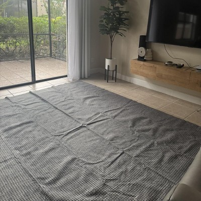 Acekool 5x7 Boho Washable Area Rug, Soft Ultra Thin Waffle Print Non-Slip Carpet, Low Pile Accent Rug for Living Room, Bedroom, Grey