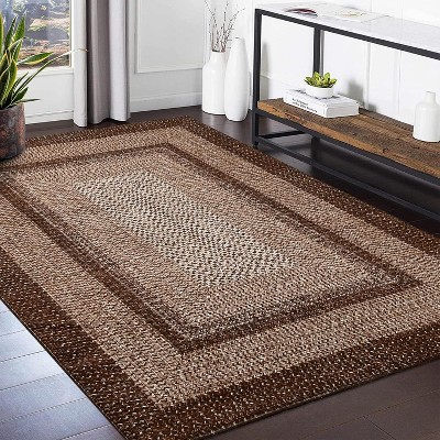 Acekool 5x7 Modern Abstract Area Rug, Machine Washable, Non-Slip, Faux Wool Soft Low Pile Carpet for Living Room, Bedroom, Brown