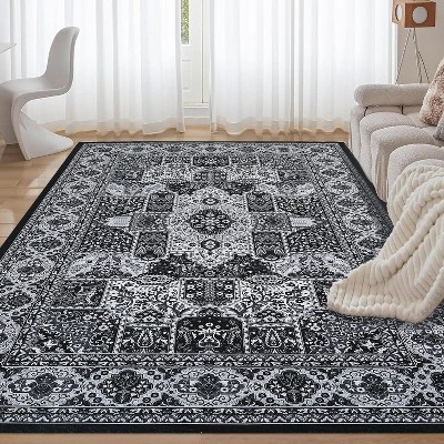 Acekool 5x7 Modern Geometric Trellis Washable Area Rug, Non-Slip Low-Pile Indoor Carpet for Living Room, Bedroom, Dining Room, Office, Blue