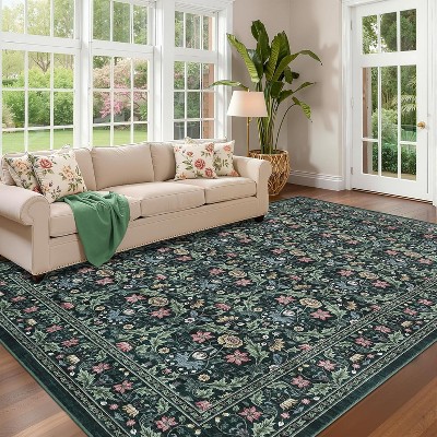 Acekool 8x10 Modern Striped Area Rug, Large Washable Non-Slip Carpet, Stain-Resistant Low Pile Neutral Floor Mat for Living Room, Bedroom, Black