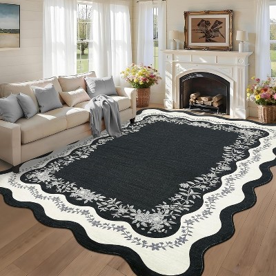 Acekool 8x10ft Green Festive Holiday Rug, Washable Non-Slip Christmas Pattern Area Carpet for Living Room & Entryway