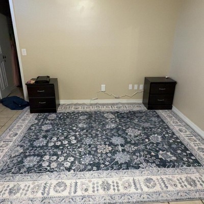 Acekool 8x10ft Vintage Thin Washable Rug, Black Distressed Floral, Non-Slip Soft Foldable Carpet for Living Room, Bedroom