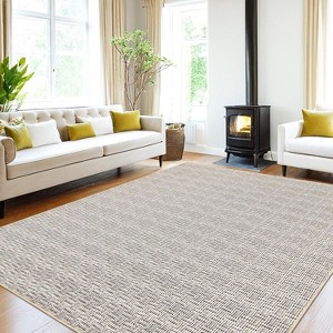 Acekool 9x12 Washable Area Rug, Modern Farmhouse Geometric, Non-Slip, Soft Low Pile, Easy Care Neutral Carpet for Living Room, Bedroom, Beige