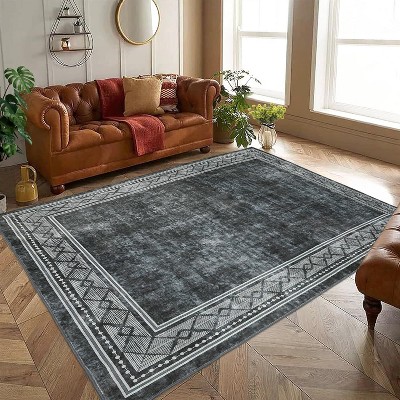 Acekool 9x12 Washable Area Rug, Modern Printed Braided Look, Non-Slip, Stain Resistant Large Grey Carpet for Bedroom, Living Room, Dining Room