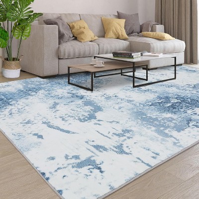 Acekool 9x12ft Washable Non-Slip Area Rug, Brown Geometric Lines, Low Pile Carpet for Living Room & Bedroom
