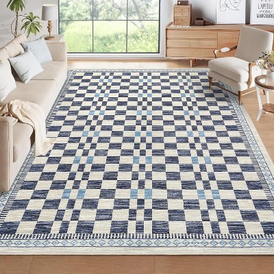 Acekool Blue Floral Print Runner Rug, Washable Low Pile Non-Slip Carpet for Entryway, Kitchen, Nursery & Playroom 9x12 Ft