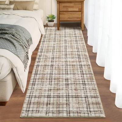 Acekool Boho Floral Checkerboard Washable Rug, Non Slip Ultra-Thin Accent Carpet for Living Room & Bedroom, Brown 5x7ft