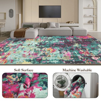 Acekool Charlotte Bordered Washable Area Rug Non Slip Soft Low Pile for Living Room Blue 10x13ft