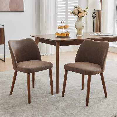 Acekool Dining Chair Set of 2, PU Upholstered Wing Back Chairs with Wood Legs, Thick Cushions, for Dining Room & Living Room, Brown