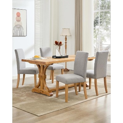 Acekool Dining Chairs Set of 6, Modern Fabric Upholstered Ergonomic Chairs, Curved Backrest, Wood Legs, Easy-to-Clean, Grey