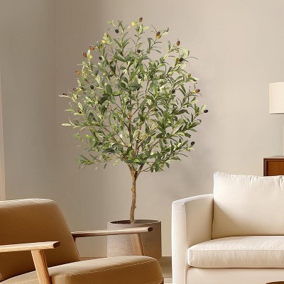 - [Year-Round Natural Look] Our artificial olive tree features textured bark, lifelike leaves, and realistic olives that add a vibrant, fresh touch to your living or work space all year long—no seasonal changes or care needed.