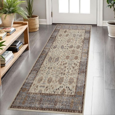 Acekool Floral Area Rug Beige 2x6 Inch Machine Washable Non-Slip Low-Pile Pearl Velvet