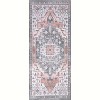 - Vibrant floral design enhances any space This beautiful red rug features an elegant floral pattern that adds warmth to rooms. The vintage-inspired print works well in living areas, bedrooms, or kitchens. The thin profile fits easily under furniture while adding decorative appeal.