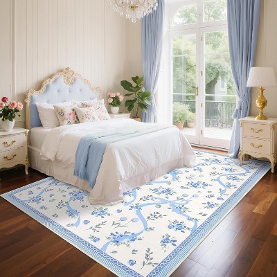 Acekool Floral Runners,Kitchen Runner Rug Ultra-Thin, Non-Slip Hallway Rug Stain Resistant Boho Low-Pile Carpet for ?Bathroom Bedroom Beige 9*12ft