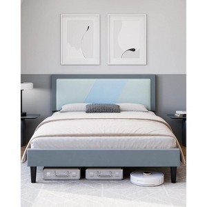 Acekool Full Size Platform Bed Frame, Adjustable Tufted Headboard, Velvet Upholstered, No Box Spring Needed, Light Blue