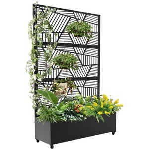 Acekool Metal Privacy Screen Planter Box with Wheels, Galvanized Garden Bed and Trellis for Climbing Plants, Outdoor Patio Raised Bed