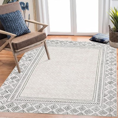 Acekool Grey Washable Area Rug 9x12, Solid Bordered Non Slip Low Pile Carpet for Living Room, Bedroom, Kids, Dining
