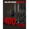 Supports up to 400 lbs. Size: 80.5" (H) x 57.5" (L) x 43.1" (W). Built with 2"x2", 1.5mm thick Q235 steel posts. Works with 1" and 2" weight plates (weights not included). Ships in one box for convenience, with easy-to-follow assembly instructions.