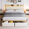 - Functional Storage: This bed frame includes two large front drawers for clothes or essentials. The storage headboard offers shelves for books, décor, or personal items, keeping your bedside organized.