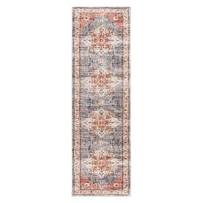 Acekool Machine Washable Vintage Area Rug, Distressed Non-Slip Soft Accent Carpet, Stain-Resistant, Low Pile, Blue, Size2x6