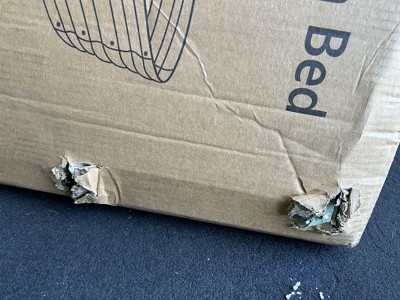 Fedex just delieved this severely damaged box with loose pieces rattling inside and screws with styrofoam pieces falling out of the box, screws on my driveway and porch. The metal frame of raised bedis visibly bent... unbelievable!!