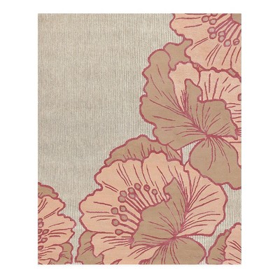 Acekool Pink Floral Print Runner Rug, Washable Low Pile Non-Slip Carpet for Entryway, Kitchen, Nursery & Playroom 9x12 Ft