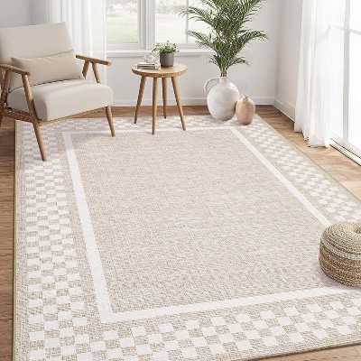 Acekool Plaid Rug, 5x7 ft, Stain Resistant Washable Area Rug for Living Room Bedroom, Blue/Beige