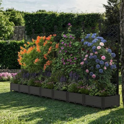 Acekool 73"x47" Garden Planter with Privacy Screen & Wheels - Metal Raised Bed (White/Black)